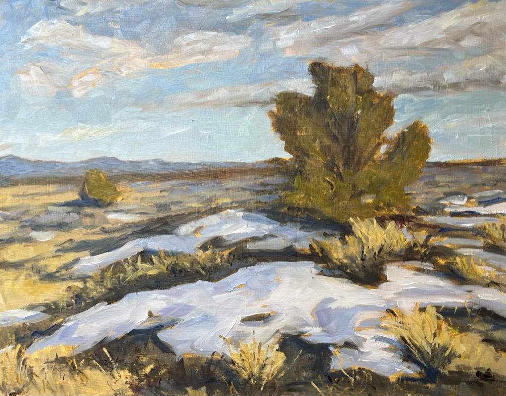 The high plains of southern Colorado have a particular light due to the elevation. I stopped at this location to capture late afternoon light striking the pinon pine trees, golden grasses, and patches of melting snow. Off in the distance are hills leading up to the Sangre de Cristo mountains.