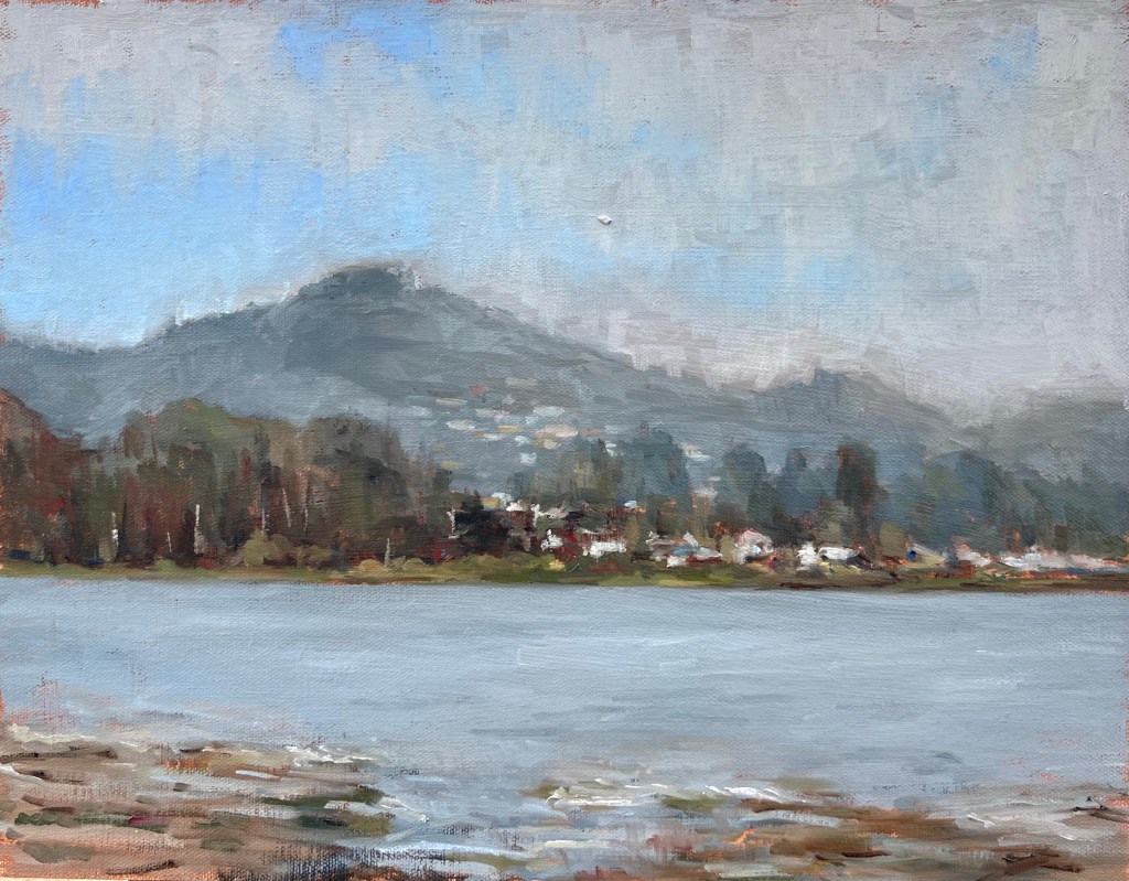 2025; oil on panel; 11×14. Painted en plein air on the shore of Morro Bay. Another challenge for me as I tackled the coastal atmosphere of California – quite different from the dry air of Colorado that I’m used to painting.